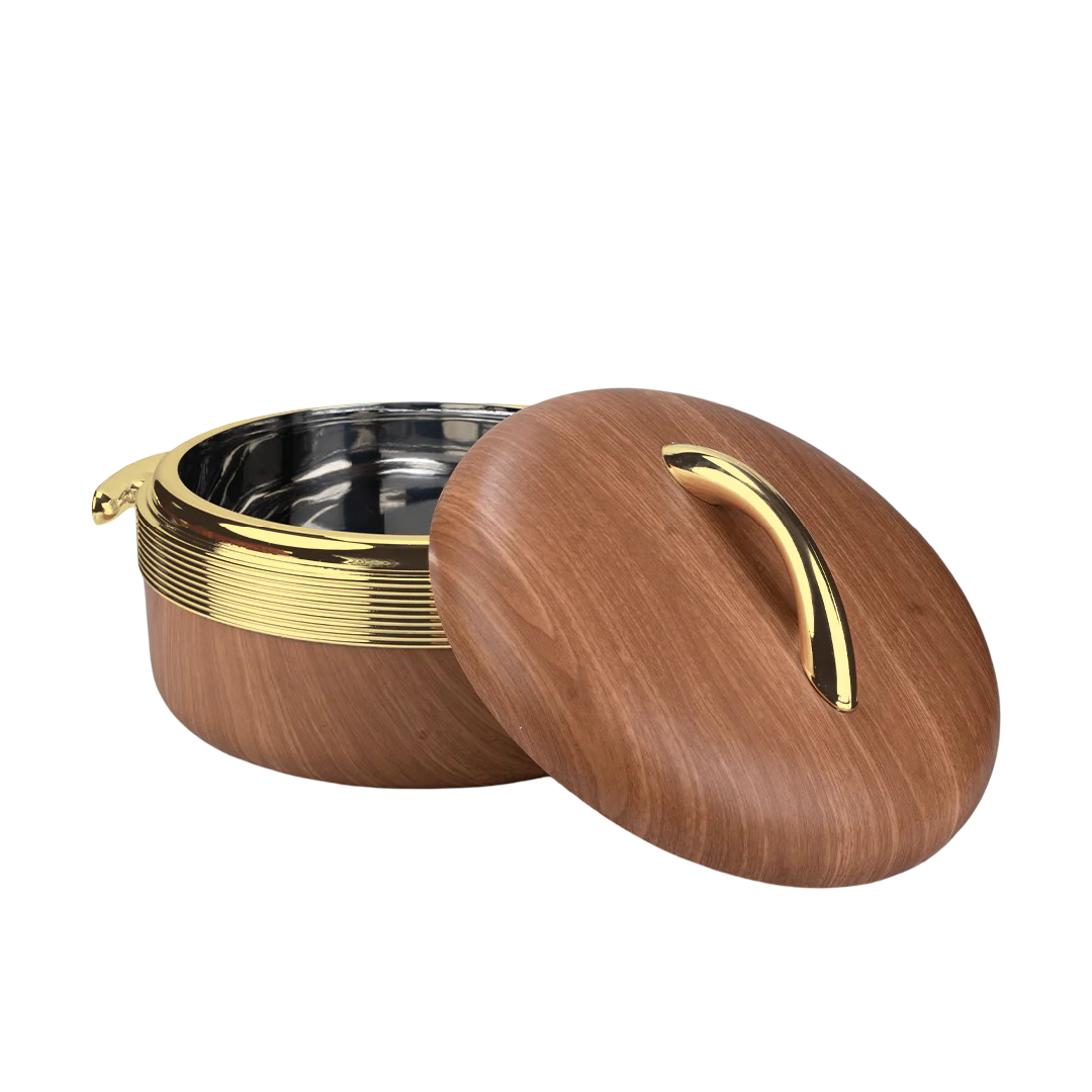 Apne dining table ko upgrade karein Ever Life Signature Hotpot XX-L ke sath. Yeh elegant hotpot wood texture finish aur gold & silver plated design ke sath aapke meals ko ghanto tak garam aur fresh rakhta hai. Perfect choice for family dinners, dawats and parties.